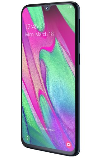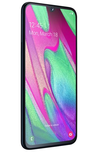 The black Galaxy A40 has a large display with a borderless design, only a slightly thicker edge can be seen at the bottom. The screen is 5.9 inch, but the device itself is not that big thanks to the borderless design. Because the screen is also quite narrow, the device fits nicely in the hand. The selfie camera is incorporated in a notched recess at the top of the screen.